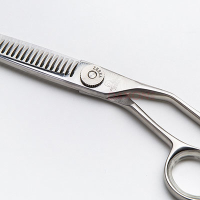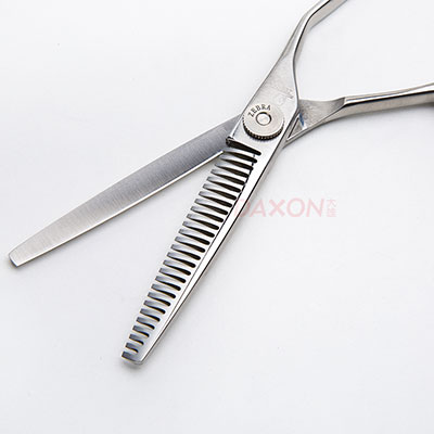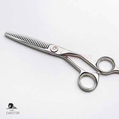 平口齿,打薄率10-15%,剪切轻松,无明显断层面,表面不毛躁,动刃经特殊安全处理,多角度抽剪不起毛,不扯发,保持头发的亮泽,适合女发调量。